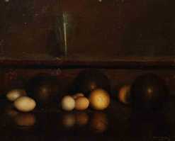 Bocce, biglie e uova Bowls, balls and eggs 1940, olio su tela / oil on canvas cm 37x45 ![]() |