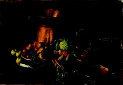 Tavola con frutta e verdura Table with fruit and vegetables 1949 (?), olio su cartone / oil on cardboard cm 73x104 ![]() |