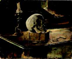 Teschio su libro Vanitas 1946, olio su cartone / oil on cardboard cm 44x54 ![]() |