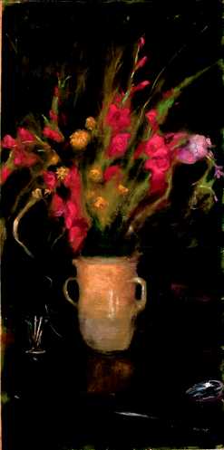 Vaso di gladioli Vase with gladioli 1951, tempera grassa su cartone e lana / tempera grassa on cardboard and wool cm 102x52 ![]() |