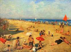 Spiaggia al Lido di Venezia Venezia Lido 1923, olio su tela / oil on canvas cm 90x120 ![]() |